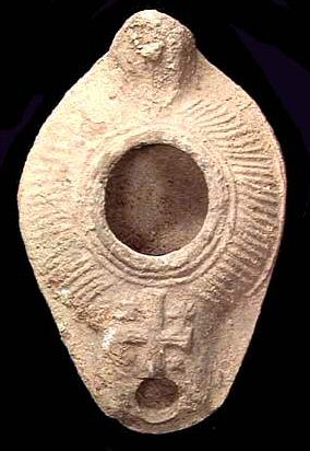 La symbolique chrétienne apparaît sur les lampes romaines à partir du quatrième siècle, plus particulièrement avec les lampes "byzantines ", produites en Afrique du nord ou dans l'empire Romain d'Orient.